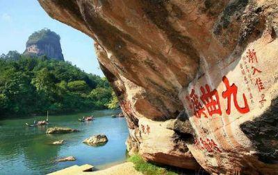 九曲溪是武夷山脉主峰,位于福建省武夷山峰岩幽谷之中。山不高有高山之气魄,水不深集水景之大成,山与水的完美结合是九曲溪旅游线路最突出的特色。曲折萦回的九曲溪贯穿于丹崖群峰之间,如玉带串珍珠,将36峰,99岩连为一体,构成"一溪贯群山,两岸列仙岫"的独特自然美景。九曲溪全长约9.5公里,水绕山行,山临水立,仰角适中,滩潭交错,身临其间,有如漫步奇幻百出的山水画廊。乘上古朴的竹筏荡入山光水色之中,抬头可见山景,俯首可观水色,侧耳能听溪声,伸手能触清波,游人可领略到筏在水中流,人在画中游的心境之和,漂流之趣。